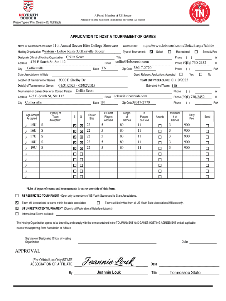 Get the free Name of Tournament or Games 11th Annual Soccer Elite College Showcase