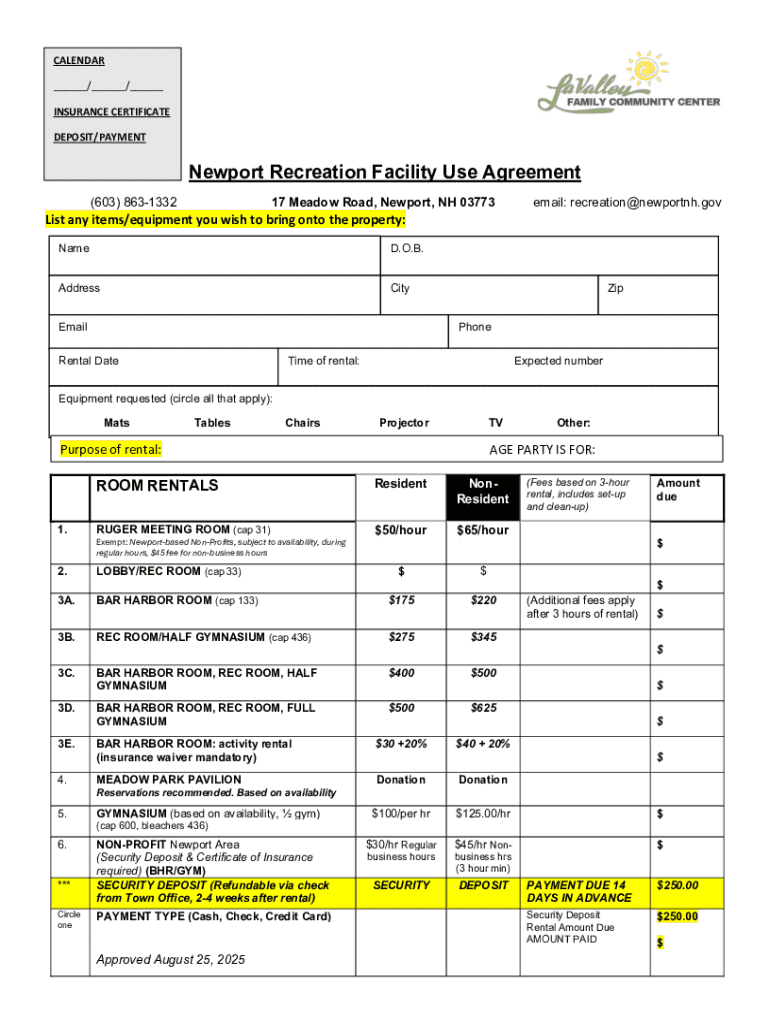 Get the free Newport Recreation Facility Use Agreement