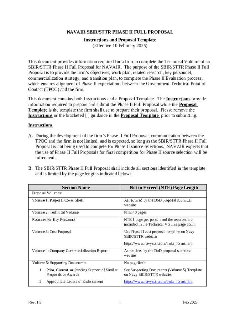 Instructions for the form NAVAIR-Phase-II-FullProposal-Template-02-10-25.docx