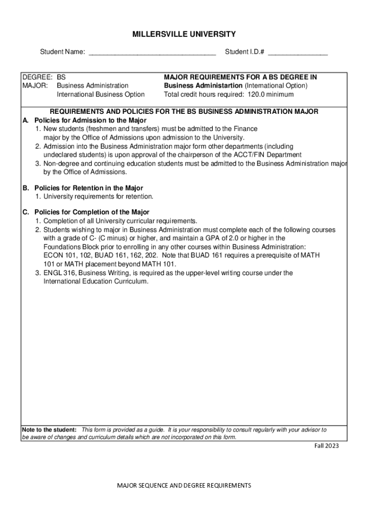 Completing the business-administration-international-business-curriculum form involves various essential requirements that ensure students grasp fundamental knowledge and skills needed for their careers. This curriculum includes an array of courses tailored to equip future leaders with the understanding necessary to thrive in a globalized business environment.