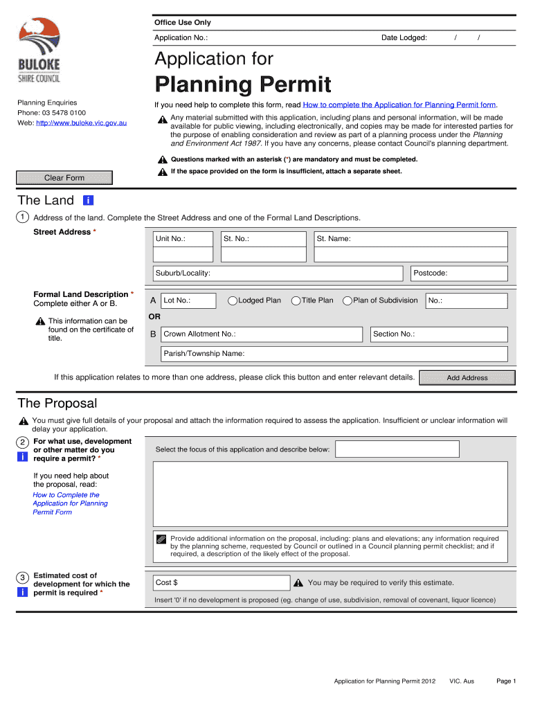 Office Use Only Application No.: Date Lodged: / / Application for Planning Permit Planning Inquiries Phone: 03 5478 0100 Web: http://www.buloke.vic.gov.au If you need help to complete this form, read