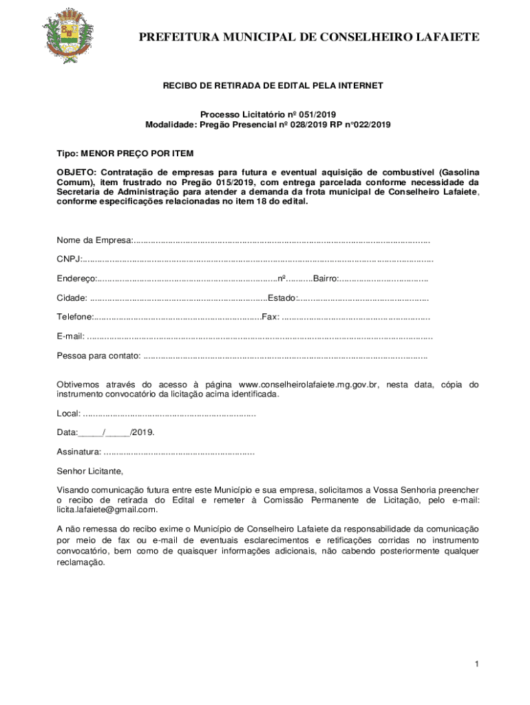 Obtenha o gratuito OBJETO: Contratao de empresas para futura e eventual aquisio de combustvel (Ga...