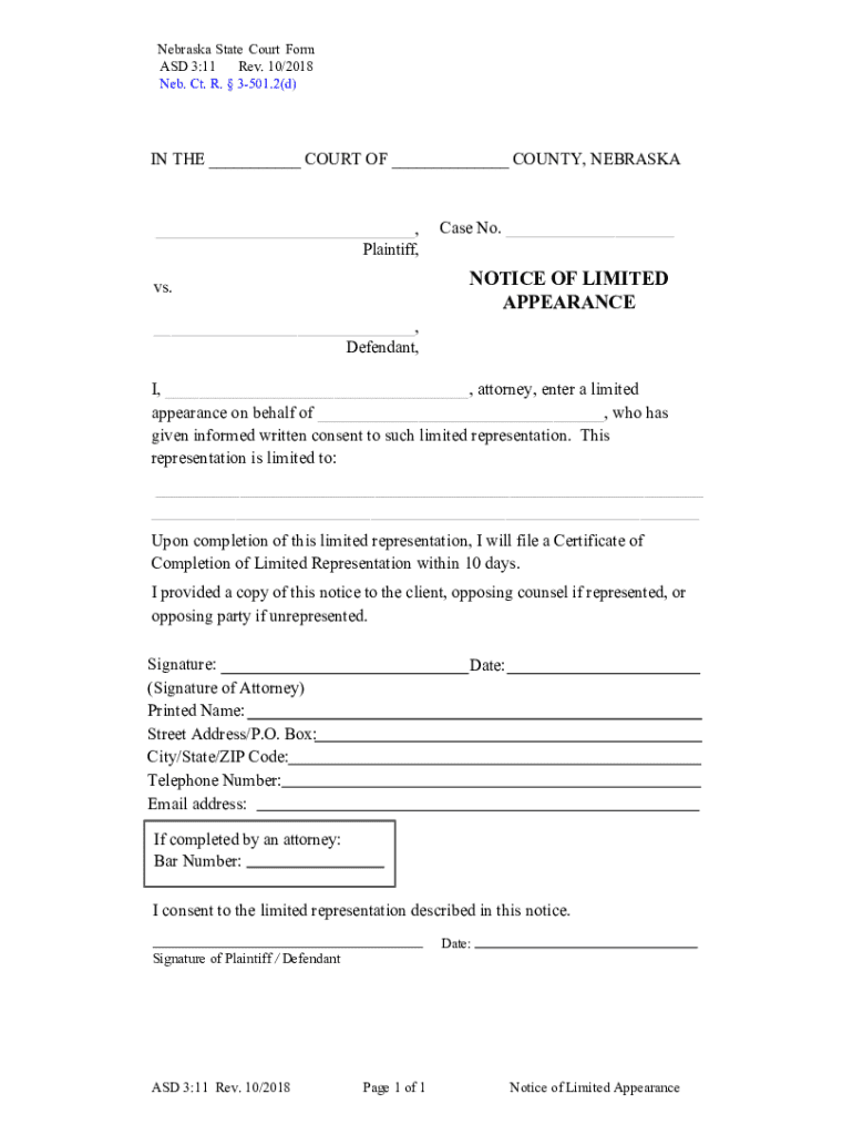 The information required may also include contact details for both parties and, in some jurisdictions, a statement of non-representation for issues not covered by the attorney’s involvement. Given the variety of regulations across states, it is vital to understand that the format and requirements of this form can differ significantly depending on local laws.