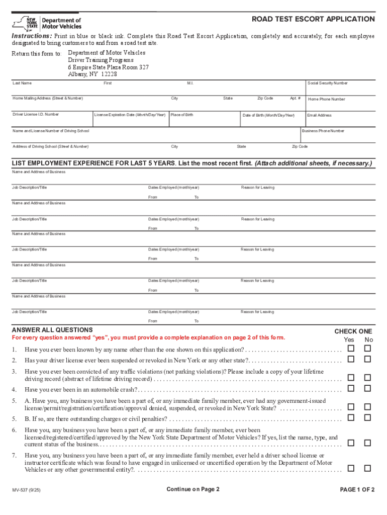 How to fill out mv-537 road test escort