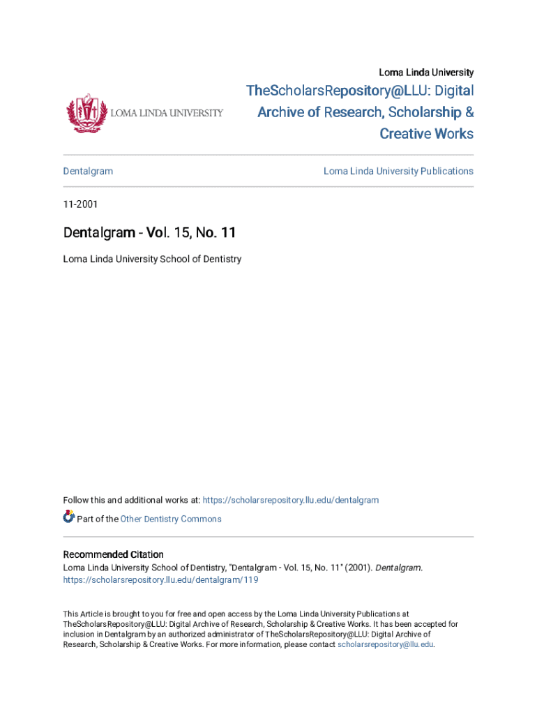 Loma Linda UniversityTheScholarsRepository@LLU: Digital Archive of Research, Scholarship & Creative Works DentalgramLoma Linda University Publications112001DentalgramVol. 15, No. 11 Loma Linda University