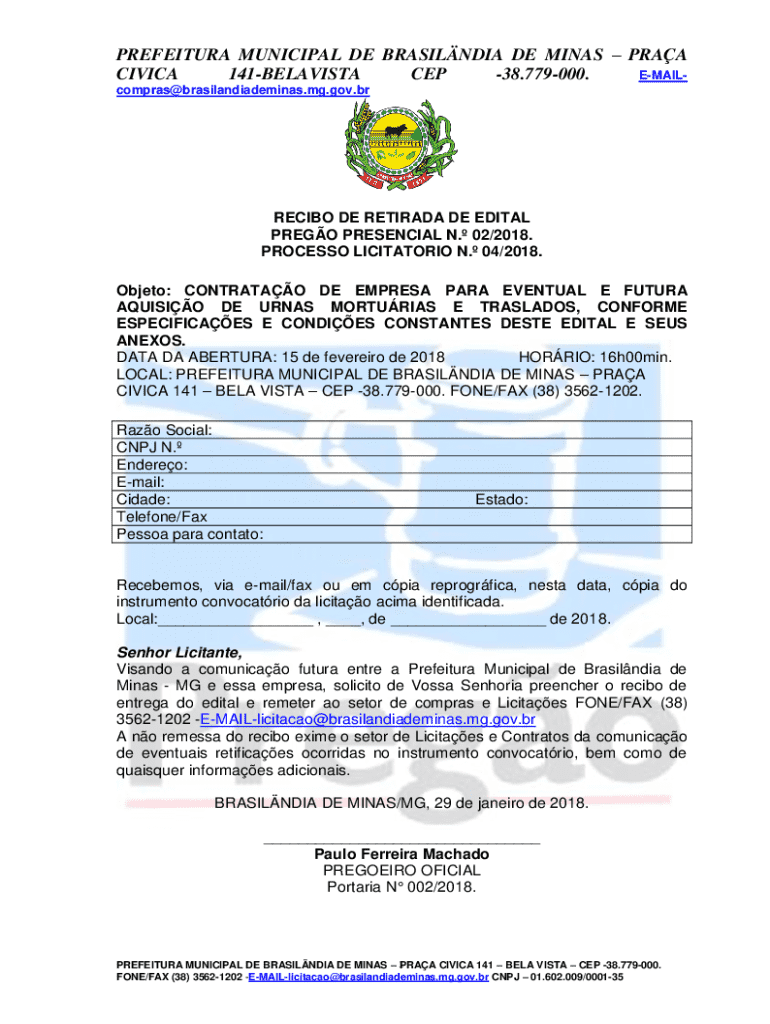 Obtenha o gratuito Objeto: CONTRATAO DE EMPRESA PARA EVENTUAL E FUTURA
