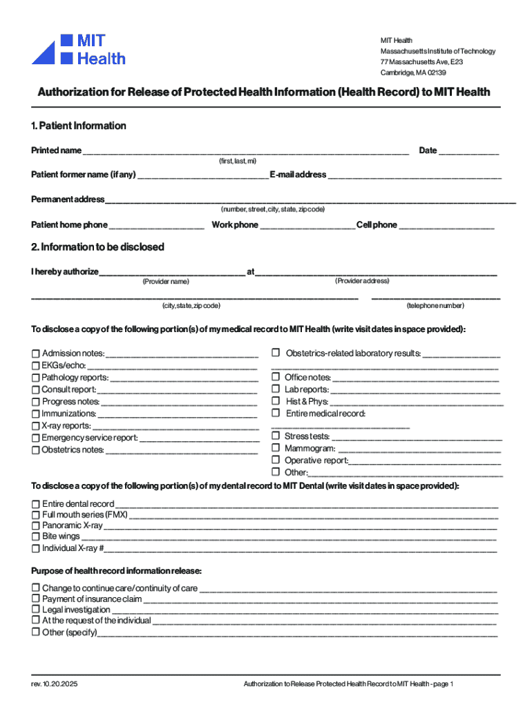 Get the free new mitformsauthorizationforreleasemit2025v348 - form fillable