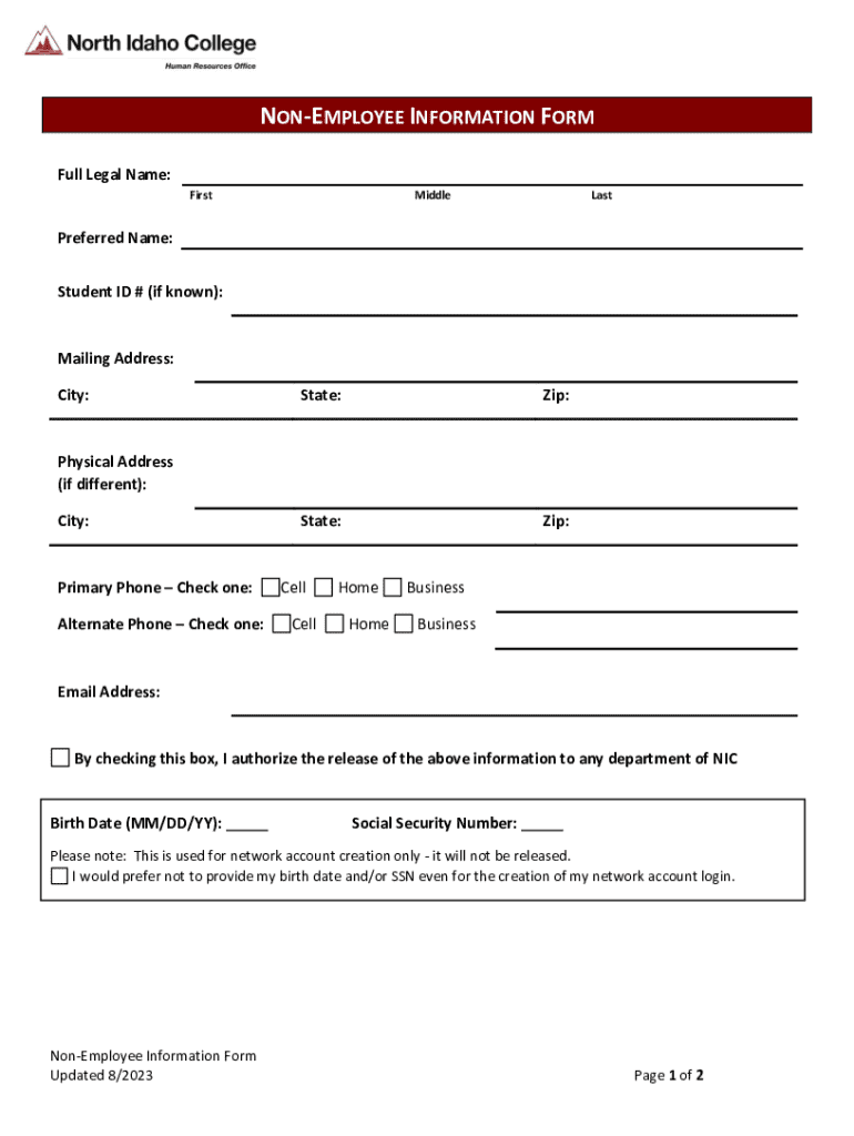 The non-employee information form is a crucial document utilized by organizations to collect necessary details from individuals who are not employed by them. This could include contractors, freelancers, and vendors who provide services but do not receive traditional employee benefits. The primary purpose of this form is to ensure accurate tax reporting and compliance with federal regulations, particularly for the Internal Revenue Service (IRS).