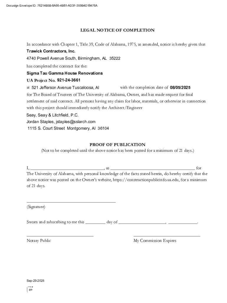 Its importance cannot be understated; the form establishes deadlines for filing lien claims and helps to resolve lingering disputes regarding project completion. Essentially, it marks the transition from the construction phase to the post-construction period, initiating necessary legal procedures in the lien chain process.