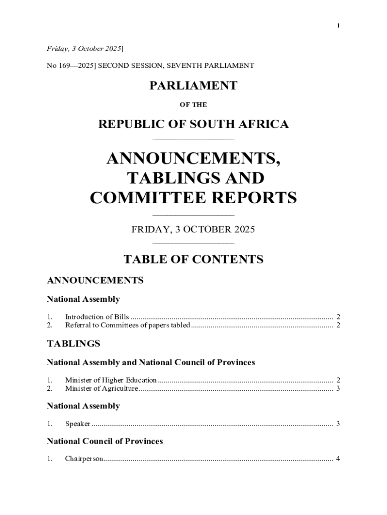 Get the free No 1692025 SECOND SESSION, SEVENTH PARLIAMENT