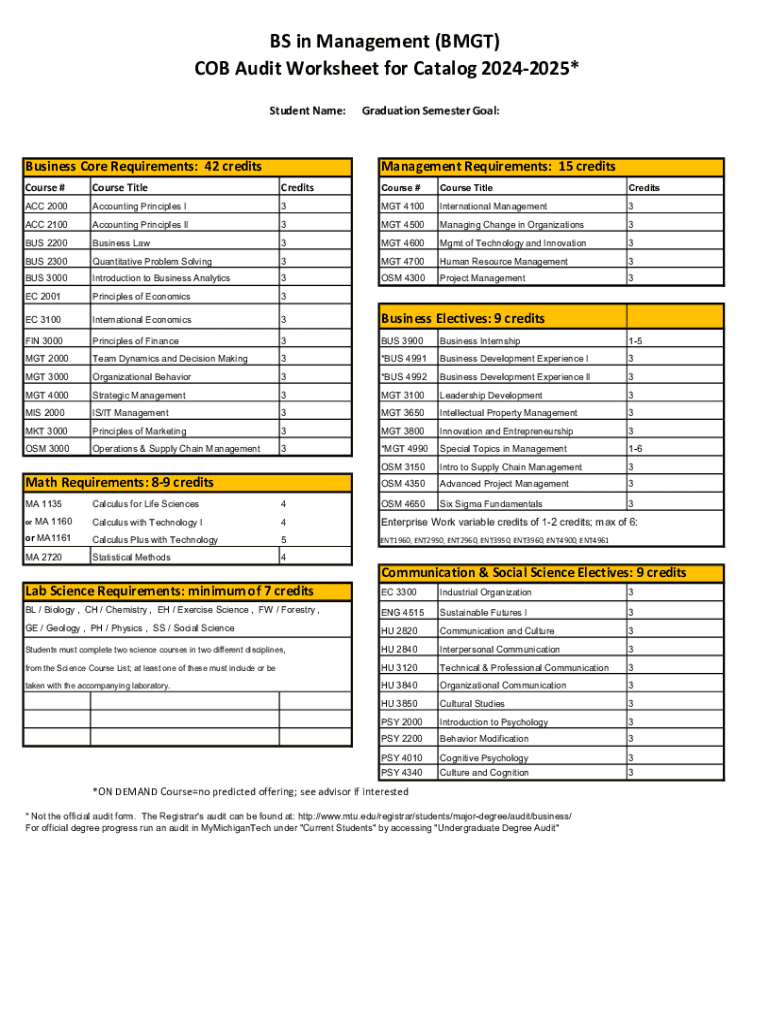 Get the free BS in Management (BMGT) COB Audit Worksheet for ...