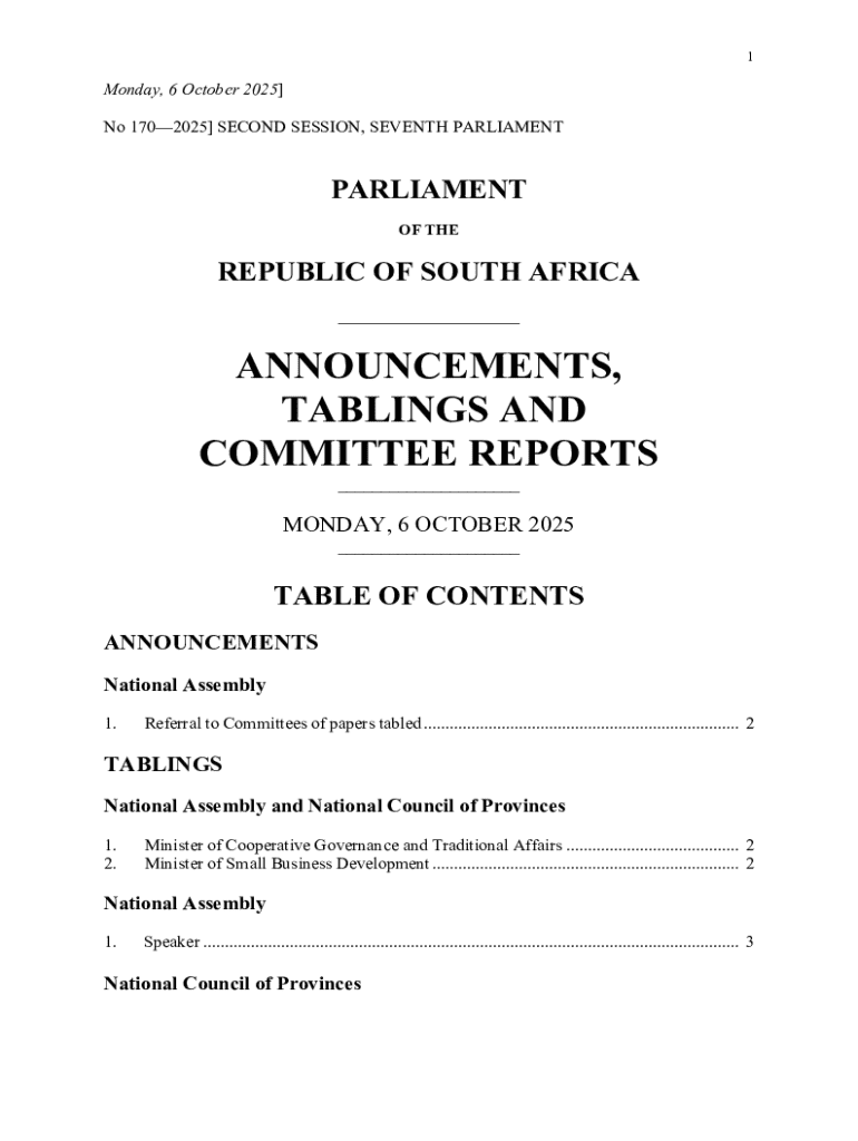 Get the free No 1702025 SECOND SESSION, SEVENTH PARLIAMENT
