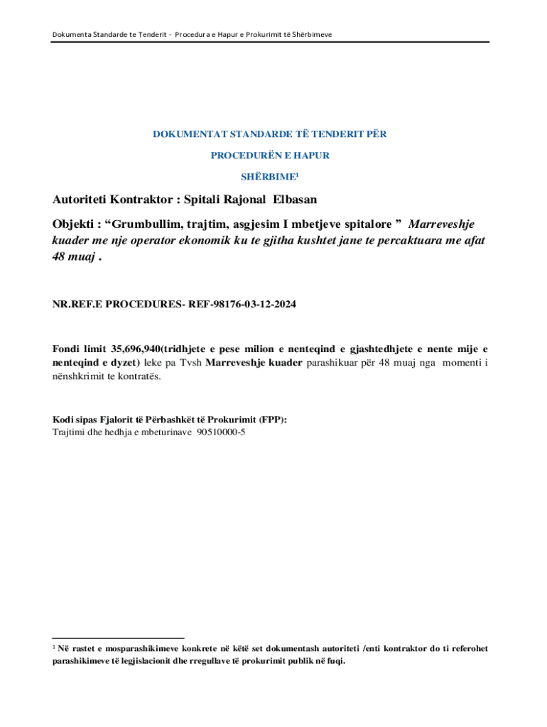 Dokumenta Standarde te TenderitProcedura e Hapur e Prokurimit t ShrbimeveDOKUMENTAT STANDARDE T TENDERIT PR PROCEDURN E HAPUR SHRBIME1Autoriteti Kontraktor : Spitali Rajonal Elbasan Objekti : Grumbullim,