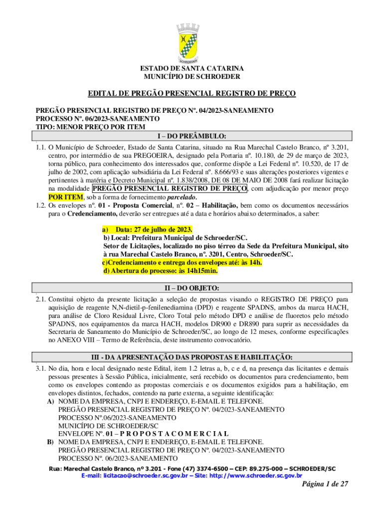 Obtenha o gratuito na modalidade PREGO PRESENCIAL REGISTRO DE PREO, com adjudicao por menor preo