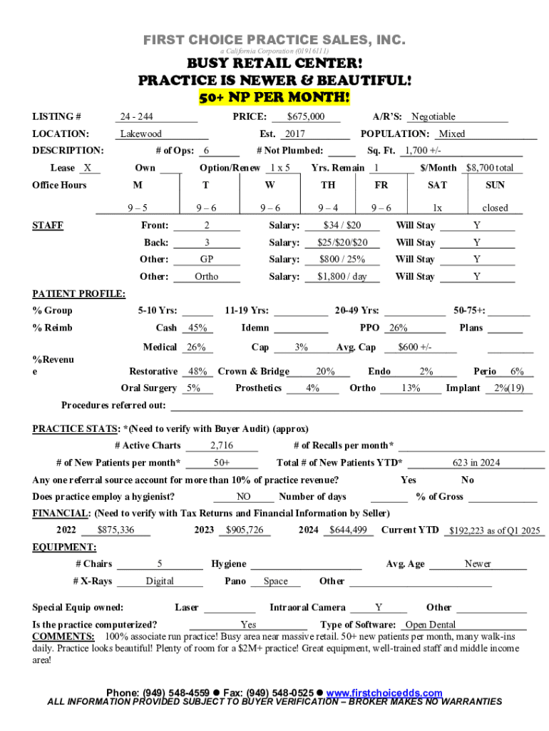 Get the free Dental Offices for SaleSouthern California Dental Broker