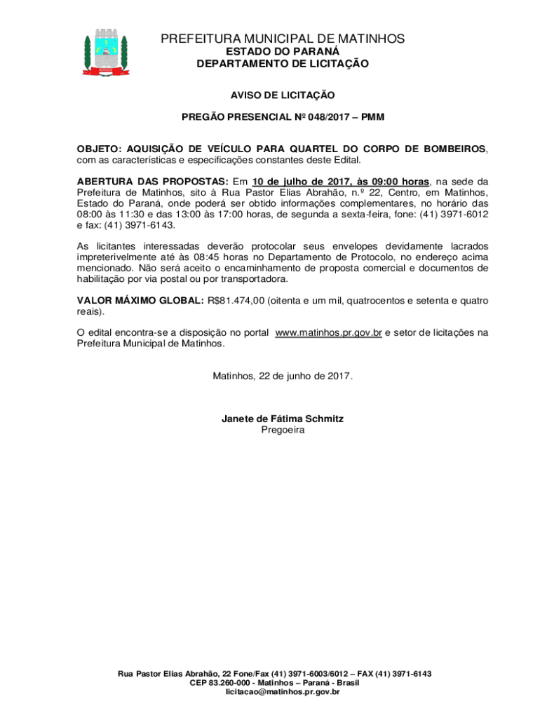 Obtenha o gratuito OBJETO: AQUISIO DE VECULO PARA QUARTEL DO CORPO DE BOMBEIROS,