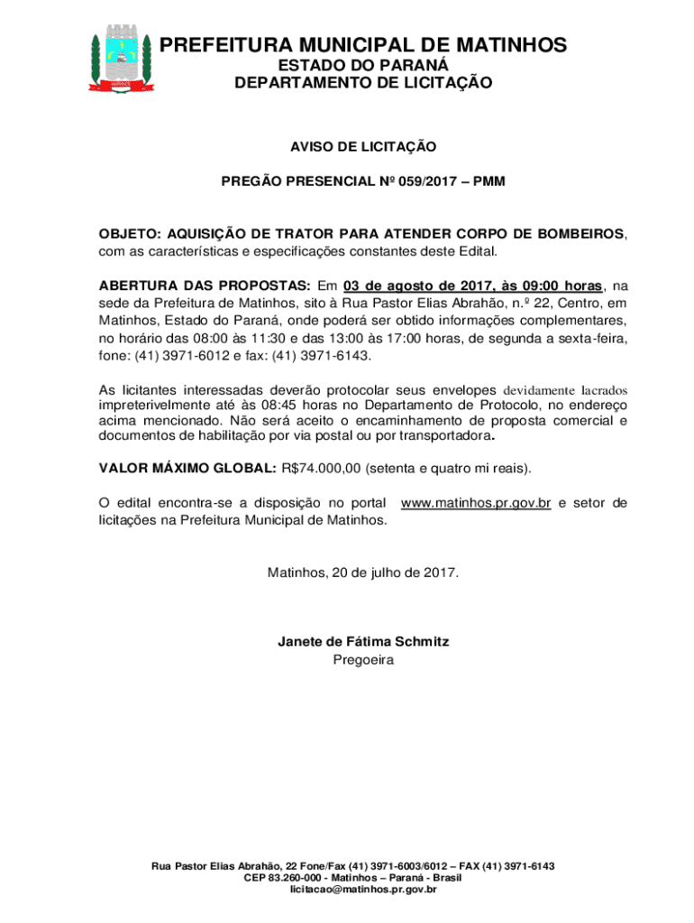 Obtenha o gratuito OBJETO: AQUISIO DE TRATOR PARA ATENDER CORPO DE BOMBEIROS,