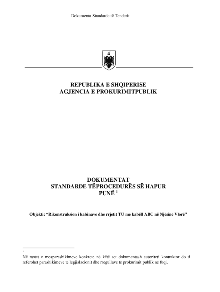 Dokumenta Standarde t TenderitREPUBLIKA E SHQIPERISE AGJENCIA E PROKURIMITPUBLIKDOKUMENTAT STANDARDE TPROCEDURS S HAPUR PUN 1Objekti: Rikonstruksion i kabinave dhe rrjetit TU me kabll ABC n Njsin