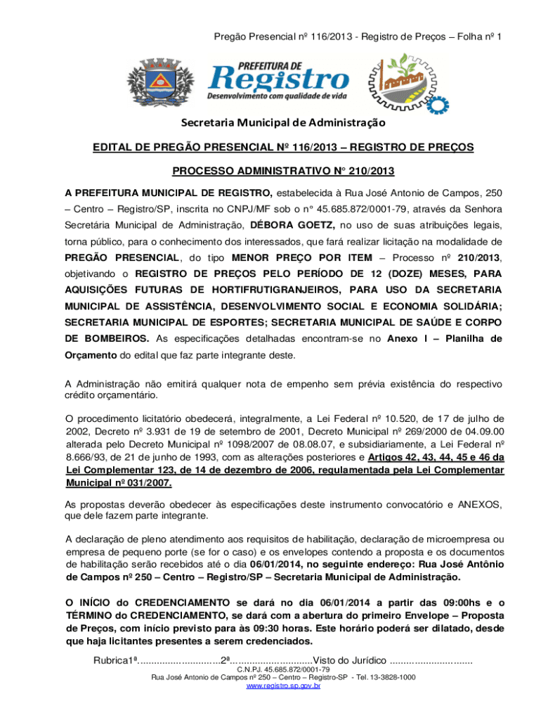 Obtenha o gratuito objetivando o REGISTRO DE PREOS PELO PERODO DE 12 (DOZE) MESES, PARA - registr...