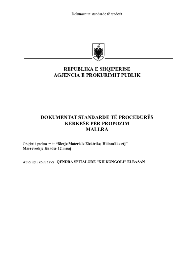 Dokumentat standarde t tenderitREPUBLIKA E SHQIPERISE AGJENCIA E PROKURIMIT PUBLIKDOKUMENTAT STANDARDE T PROCEDURS KRKES PR PROPOZIM MALLRA Objekti i prokurimit: Blerje Materiale Elektrike, Hidraulike
