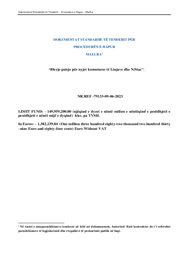 Dokumenta Standarde te TenderitProcedure e HapurMallraDOKUMENTAT STANDARDE T TENDERIT PR PROCEDURN E HAPUR MALLRA1Blerje paisje pr nyjet komutuese t Linjave dhe N/Stac.NR.REF 7913309062023LIMIT FUND:149,959,200.00