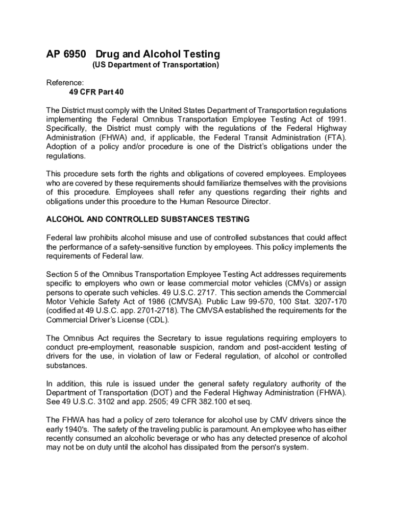 Get the free AP 6950 Drug and Alcohol Testing (U.S. Department of ...