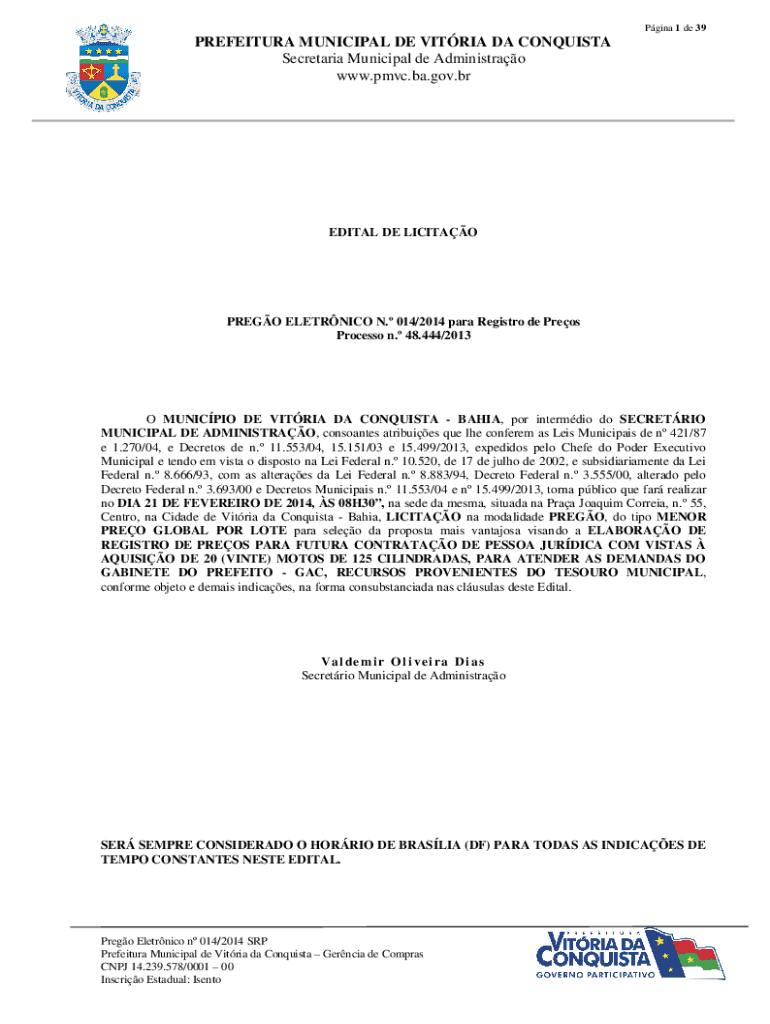 Obtenha o gratuito no DIA 21 DE FEVEREIRO DE 2014, S 08H30, na sede da mesma, situada na Praa Joa...