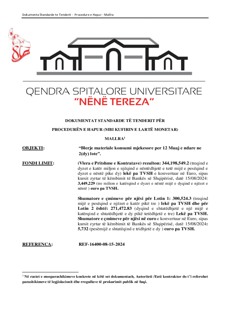 Dokumenta Standarde te TenderitProcedure e HapurMallraDOKUMENTAT STANDARDE T TENDERIT PR PROCEDURN E HAPUR (MBI KUFIRIN E LART MONETAR) MALLRA1OBJEKTI:Blerje materiale konsumi mjekesore per 12 Muaj