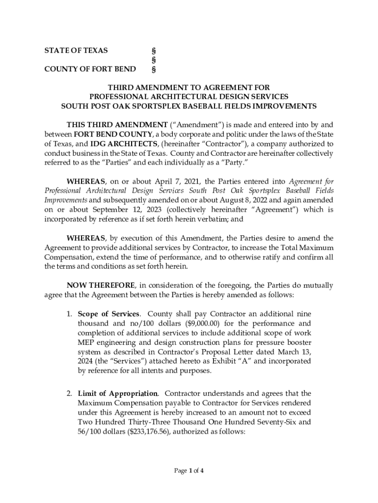 Get the free Third Amendment to Agreement for Professional Architectural ...