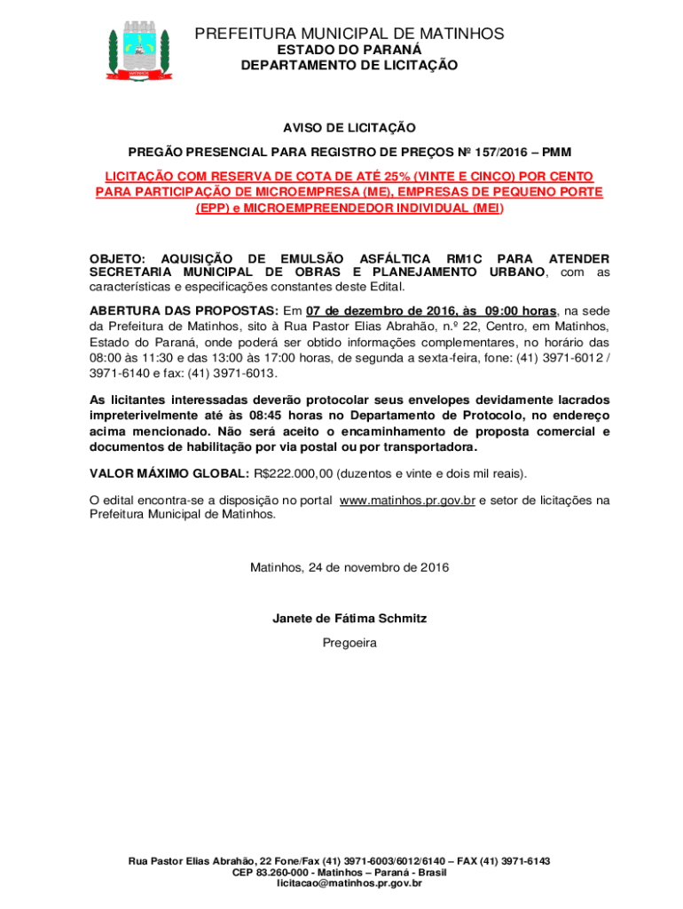 Obtenha o gratuito OBJETO: AQUISIO DE EMULSO ASFLTICA RM1C PARA ATENDER