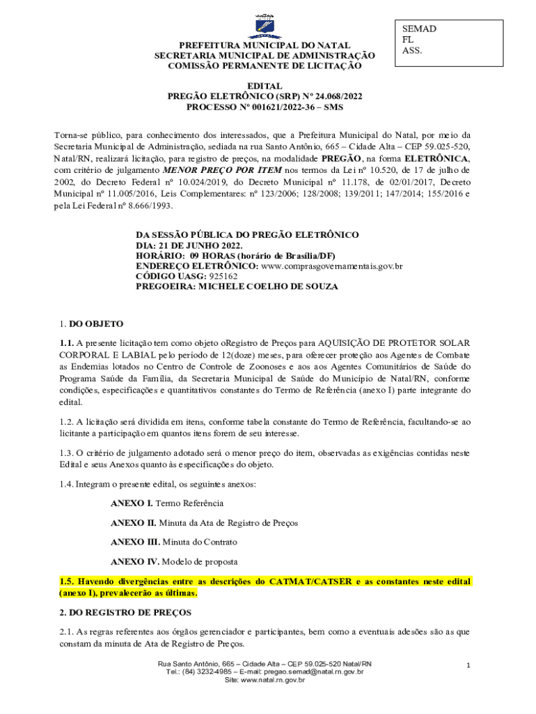 Obtenha o gratuito Natal/RN, realizar licitao, para registro de preos, na modalidade PREGO, na fo...