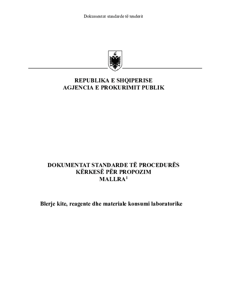 Dokumentat standarde t tenderitREPUBLIKA E SHQIPERISE AGJENCIA E PROKURIMIT PUBLIKDOKUMENTAT STANDARDE T PROCEDURS KRKES PR PROPOZIM MALLRA1Blerje kite, reagente dhe materiale konsumi laboratorikeDokumentat