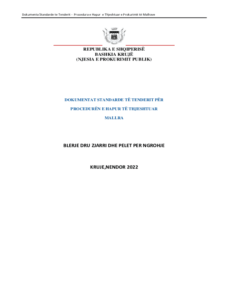 Dokumenta Standarde te TenderitProcedura e Hapur e Thjeshtuar e Prokurimit t Mallrave______REPUBLIKA E SHQIPERIS BASHKIA KRUJ (NJESIA E PROKURIMIT PUBLIK)DOKUMENTAT STANDARDE T TENDERIT PR PROCEDURN