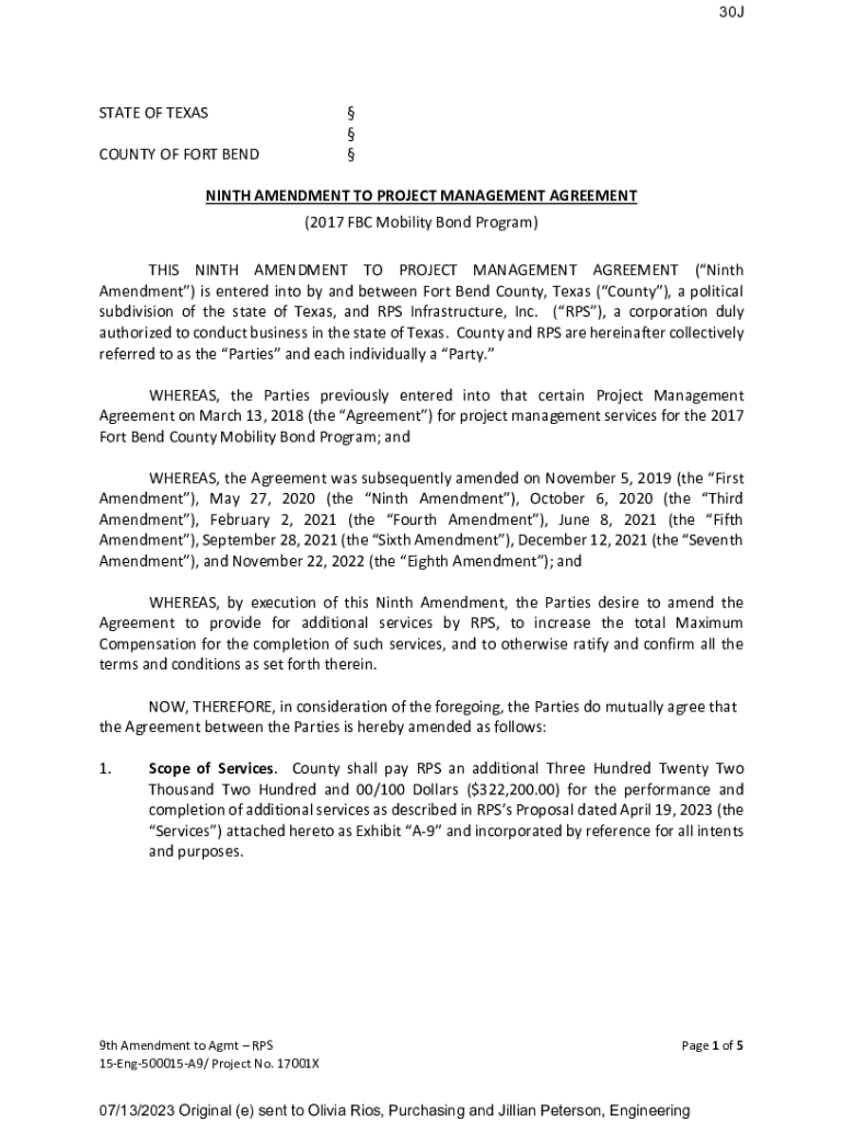 Get the free NINTH AMENDMENT TO PROJECT MANAGEMENT AGREEMENT