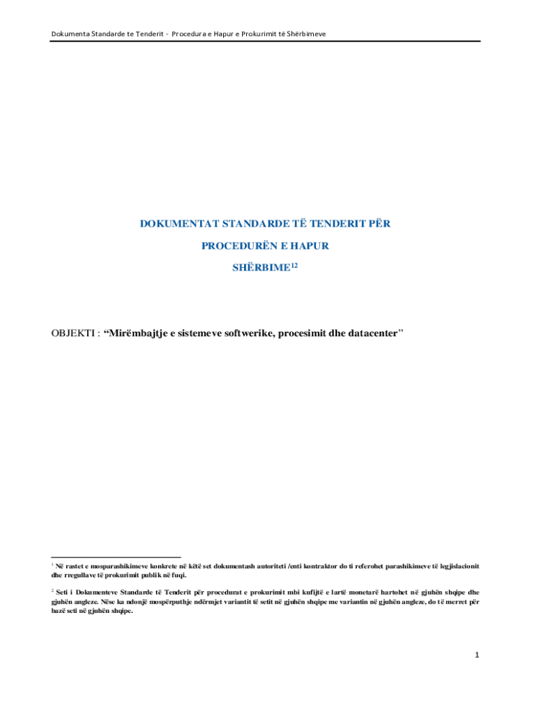 Dokumenta Standarde te TenderitProcedura e Hapur e Prokurimit t ShrbimeveDOKUMENTAT STANDARDE T TENDERIT PR PROCEDURN E HAPUR SHRBIME12OBJEKTI : Mirmbajtje e sistemeve softwerike, procesimit dhe datacenter1N