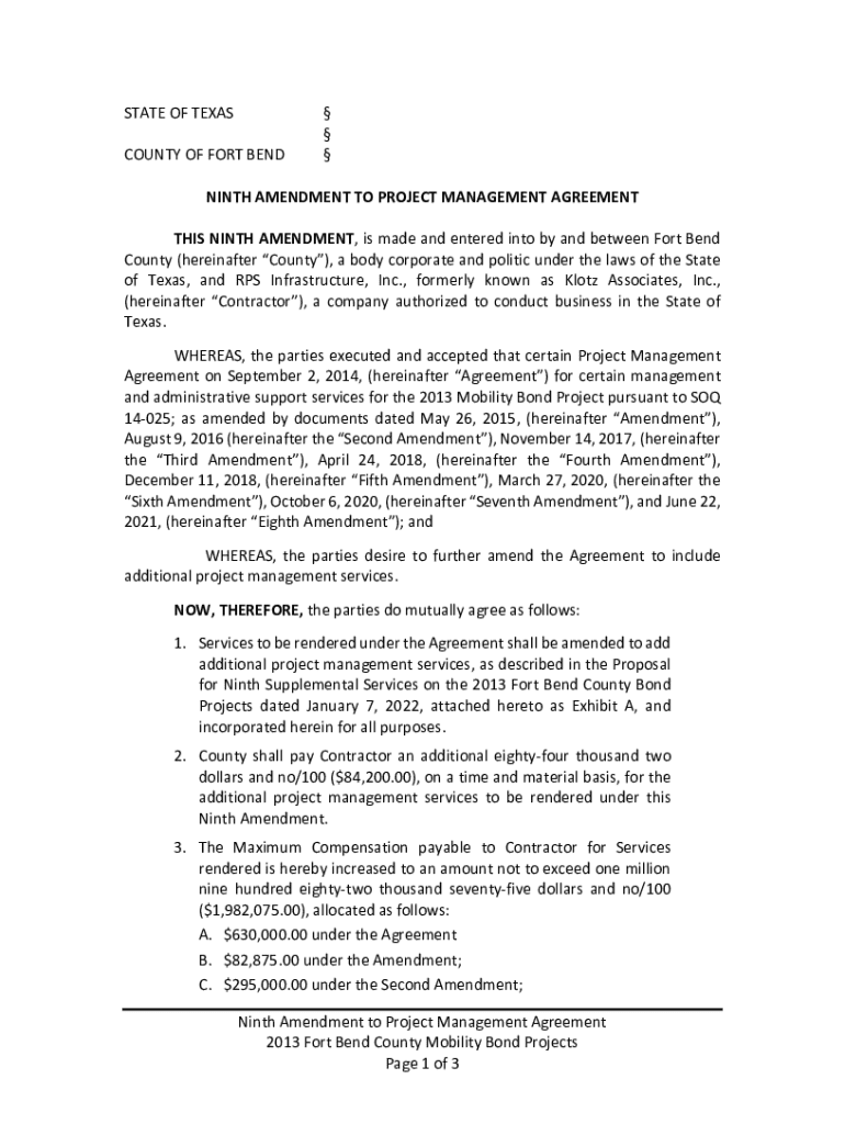 Get the free Ninth Amendment to Project Management Agreement 2013 ...