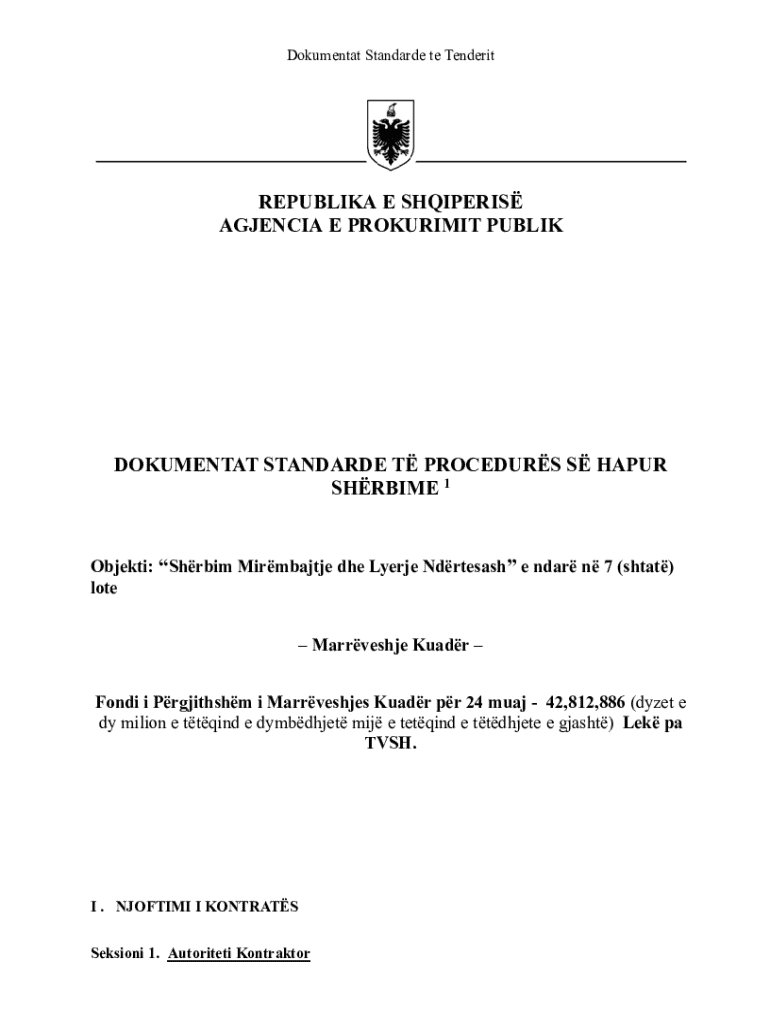 Dokumentat Standarde te TenderitREPUBLIKA E SHQIPERIS AGJENCIA E PROKURIMIT PUBLIKDOKUMENTAT STANDARDE T PROCEDURS S HAPUR SHRBIME 1Objekti: Shrbim Mirmbajtje dhe Lyerje Ndrtesash e ndar n 7 (shtat)