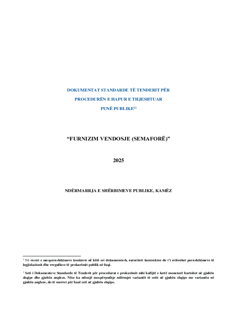 DOKUMENTAT STANDARDE T TENDERIT PR PROCEDURN E HAPUR E THJESHTUAR PUN PUBLIKE12FURNIZIM VENDOSJE (SEMAFOR)2025NDRMARRJA E SHRBIMEVE PUBLIKE, KAMZ1 N rastet e mosparashikimeve konkrete n kt set dokumentash,