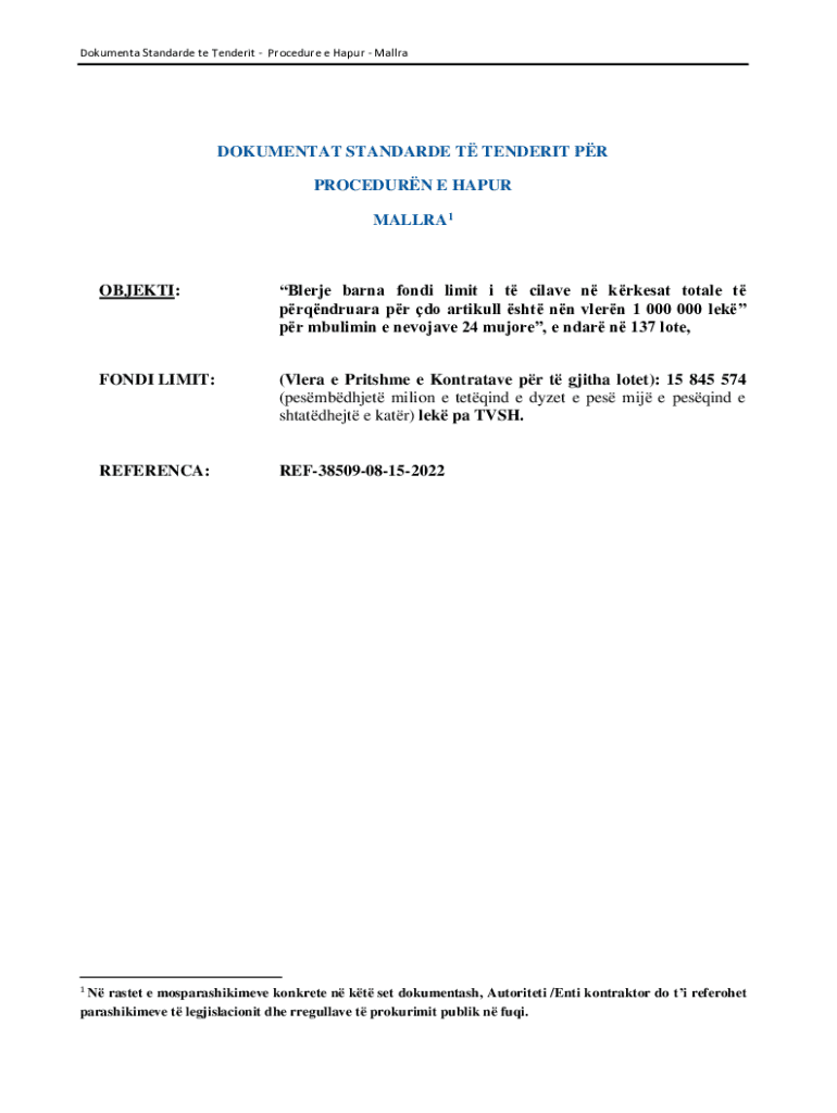 Dokumenta Standarde te TenderitProcedure e HapurMallraDOKUMENTAT STANDARDE T TENDERIT PR PROCEDURN E HAPUR MALLRA11OBJEKTI:Blerje barna fondi limit i t cilave n krkesat totale t prqndruara pr do artikull