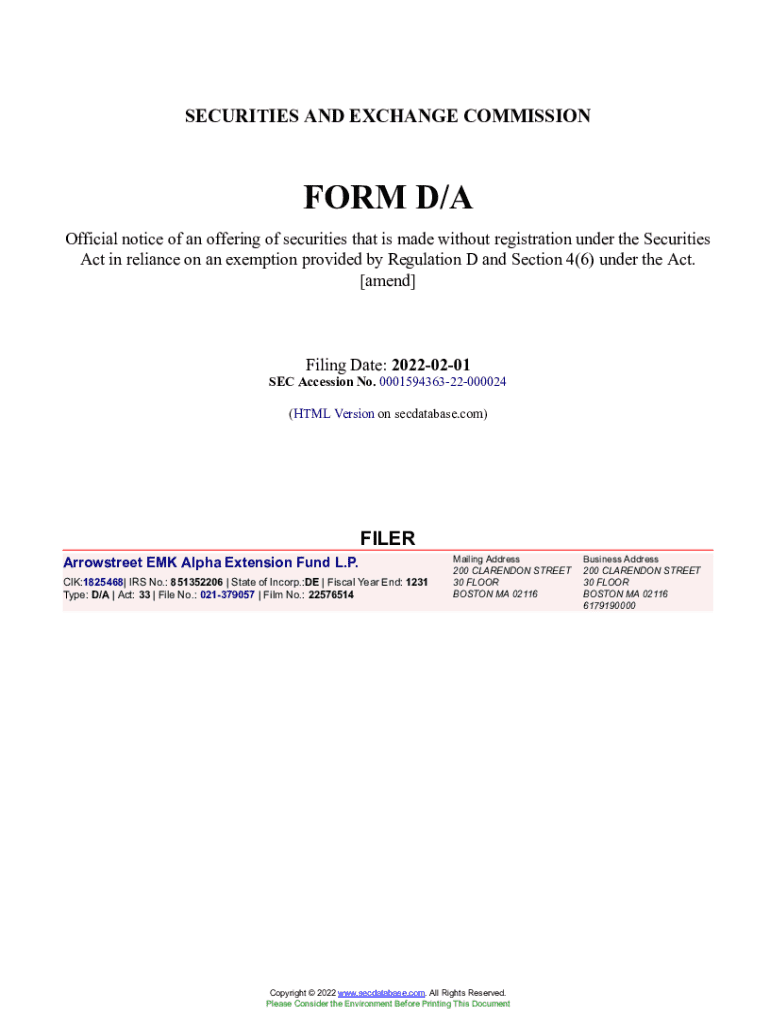 Before proceeding with the Arrowstreet EMK Alpha Extension Form, users should gather all necessary information and documentation required for completion. This preparation step ensures that all entries are accurate and comprehensive.