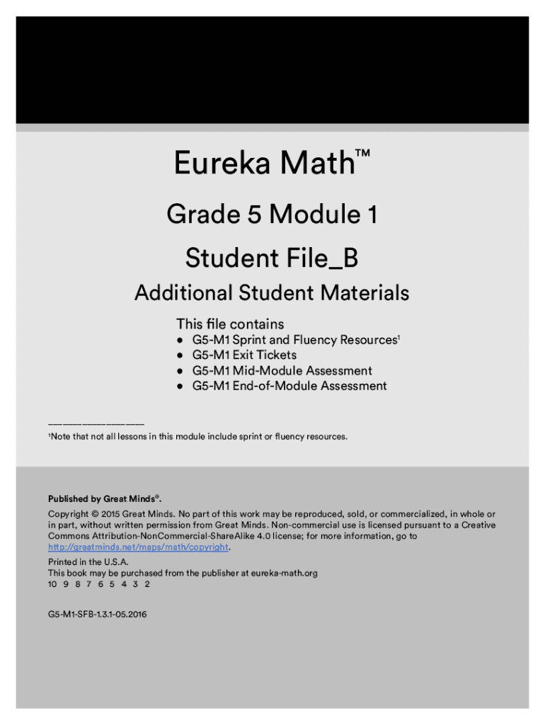 Eureka Math Grade 5 Module 1 Student File_B Additional Student Materials This file containsG5M1 Sprint and Fluency Resources1 G5M1 Exit Tickets G5M1 MidModule Assessment G5M1 EndofModule Assessment___