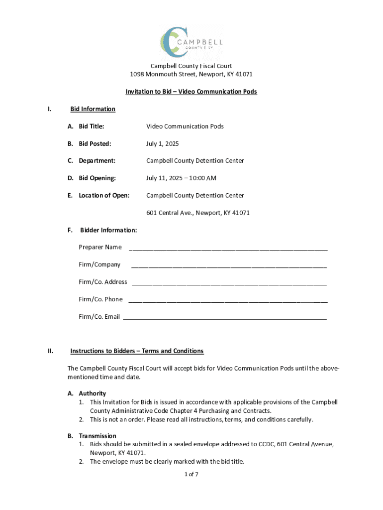 The key components of the form typically include details such as the project scope, submission criteria, important deadlines, and specific requirements unique to the bidding process. Effectively, the document serves as a roadmap for bidders, guiding them through the submission process while ensuring that the procurement entity complies with its legal and regulatory obligations.