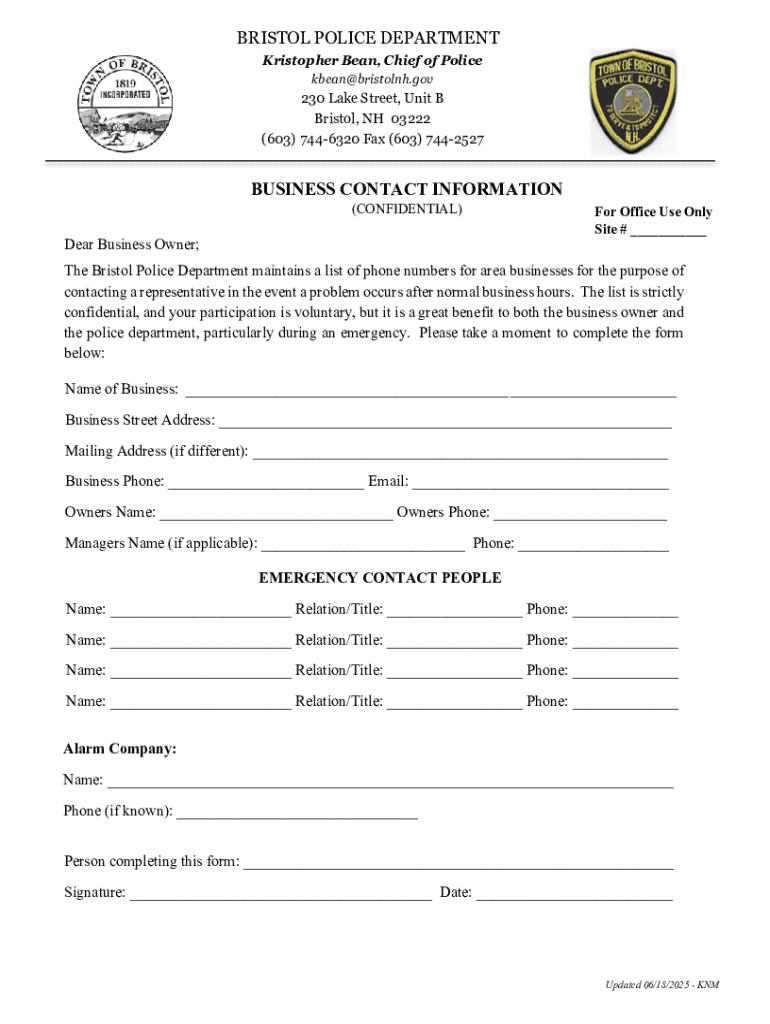 The Bristol Nhofficial Website Form serves as a crucial resource for individuals and organizations looking to complete necessary applications or documents related to the town of Bristol, New Hampshire. This form is designed to streamline processes related to permits, licenses, and public inquiries. By offering a digital format, the Bristol Nhofficial Website Form enhances accessibility and efficiency for users.