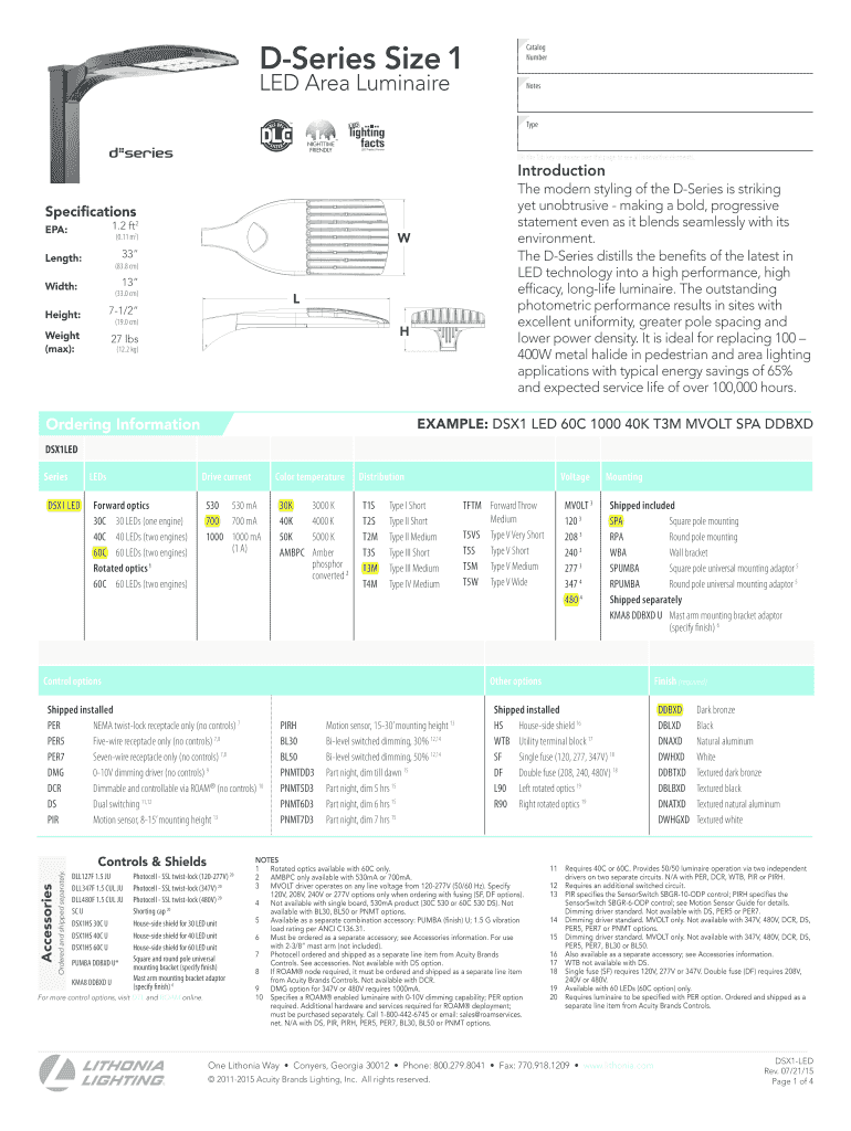 Get the free DSeries Size 1 Catalog Number LED Area Luminaire Notes Type Hit the Tab key or mouse...