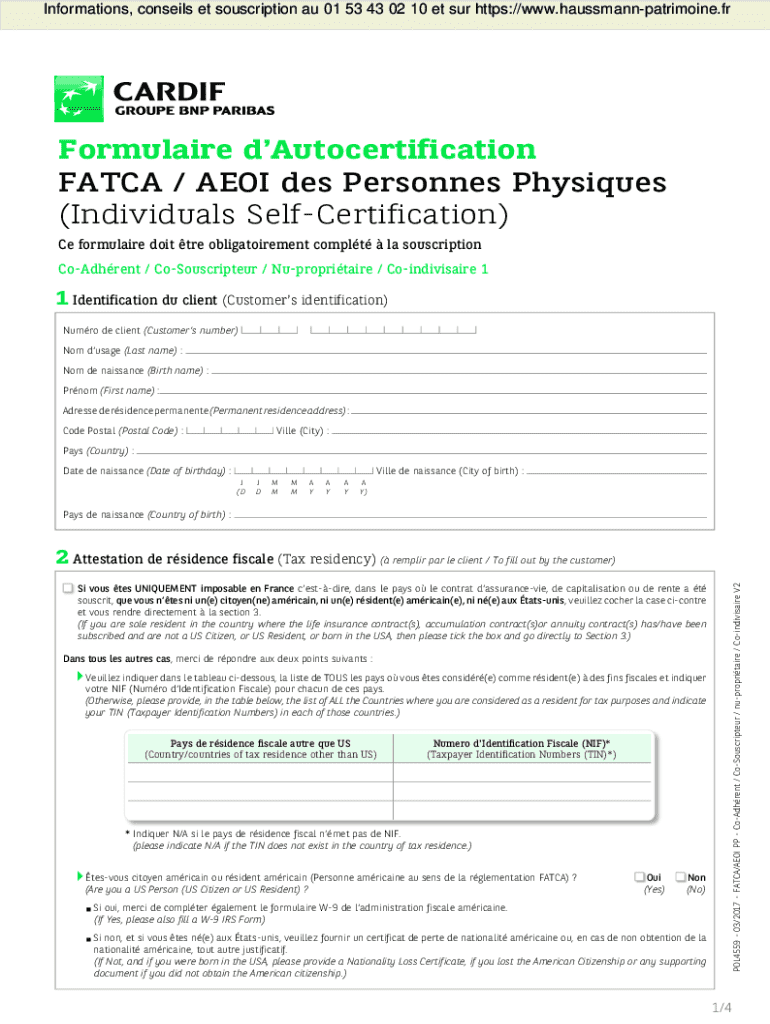Qu'est-ce que le formulaire d'auto-certification FATCA AEOi ?