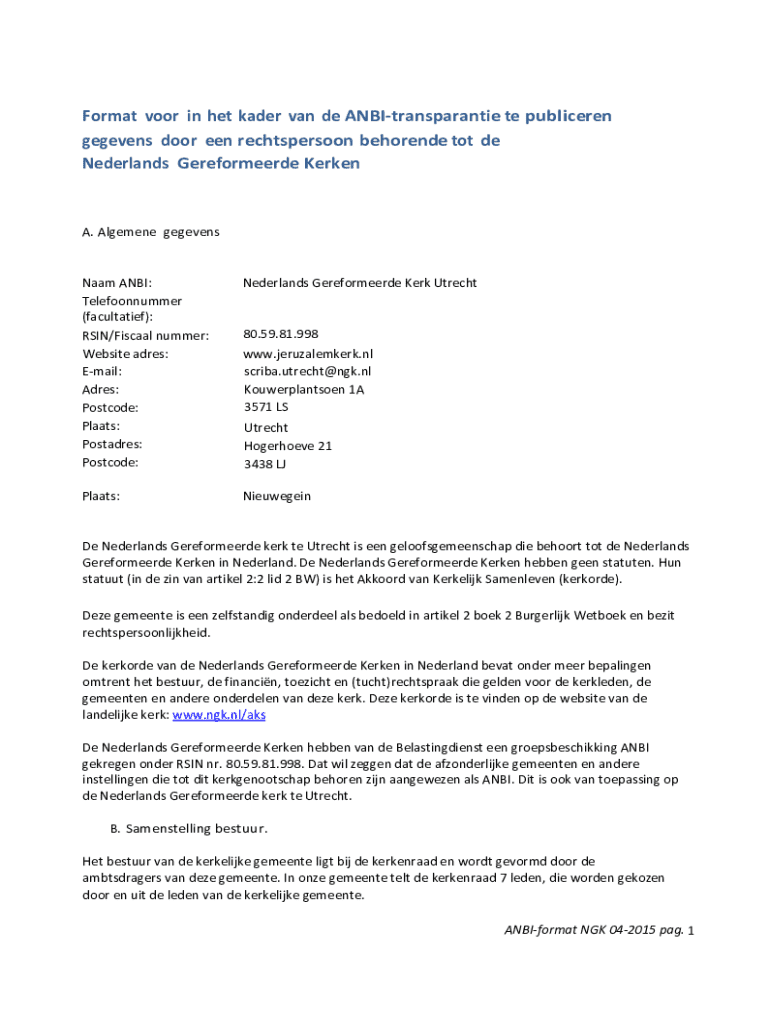 Welke informatie moet worden gerapporteerd op nederlands gereformeerde kerk utrecht?