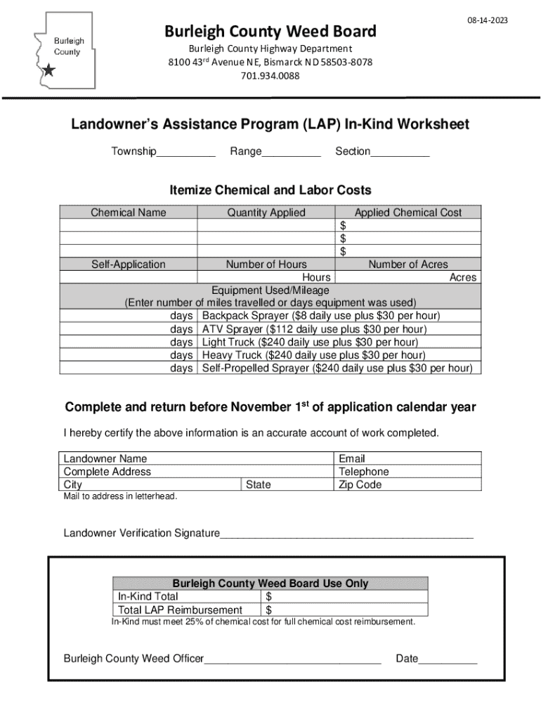 Get the free Burleigh County Weed Officer in Bismarck, ND 58501