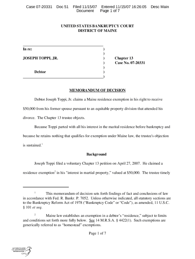Professionals in the legal field, administrators, and teams involved in compliance will often utilize the Case 07-20331 Form. The accurate completion of this form cannot be overstated, as errors may lead to delays, rejections, or complications in the associated processes. Key features of the form include various sections designated for specific information, making it essential for users to understand its structure.