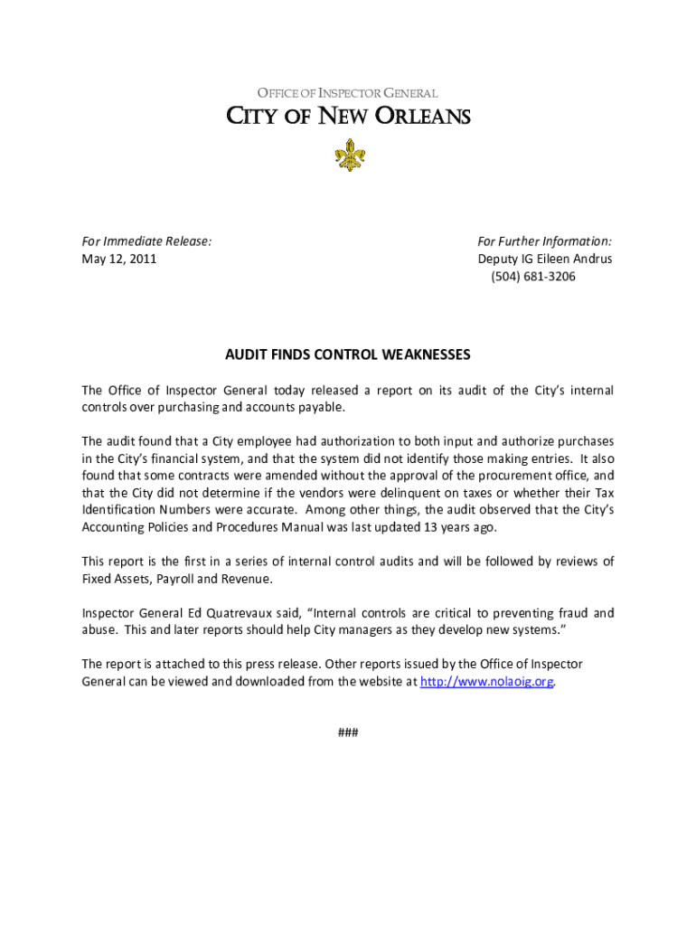 Get the free New Orleans OIG names first assistant for audit & review