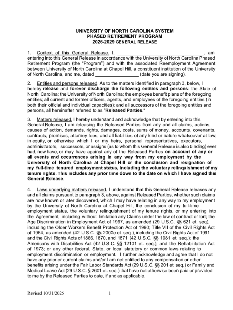 Get the free North Carolina State University Phased Retirement Program - hr unc